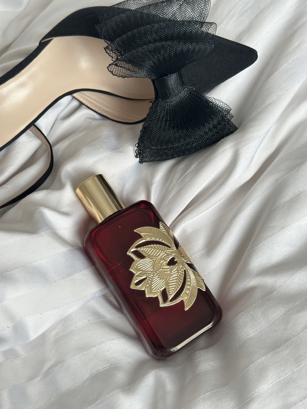 Флакон лимитированного выпуска выполнен из рубинового стекла. Золотой орнамент в виде цветка напоминает о восточном декоративном искусстве. Металлическая крышка завершает образ драгоценности, созданной для коллекции.
