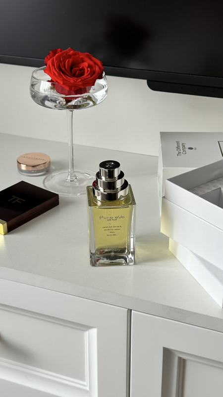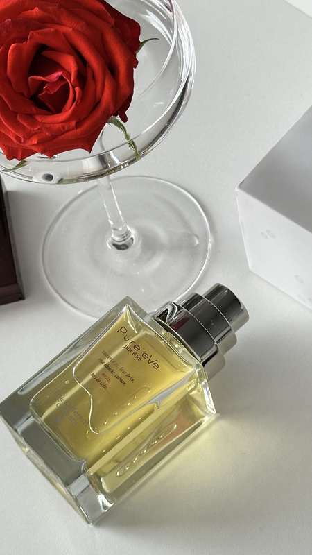 Флакон строгий и элегантный: прозрачное стекло, простые линии, серебристые детали. В нём отражена суть бренда — ясность, гармония, отсутствие излишней декоративности. Pure eVe словно приглашает ценить простое и настоящее.